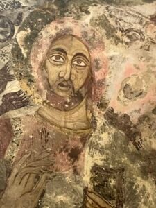 13th century frescoe of Jesus on the ceiling of the Rock Church. Photo by Joe Yogerst.